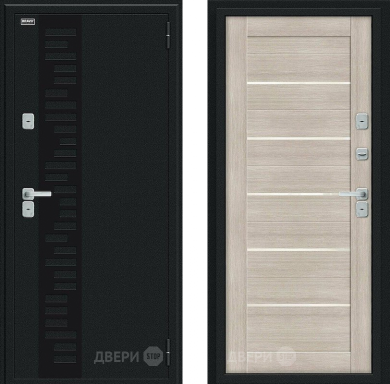 Входная металлическая Дверь Bravo Thermo Техно Декор Букле черное/Cappuccino Veralinga 860х2050 мм