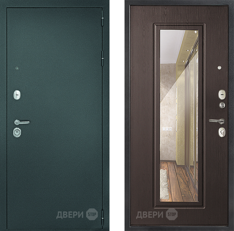 Входная металлическая Дверь Дверной Континент Рубикон Серебро Зеркало Венге 860х2050 мм