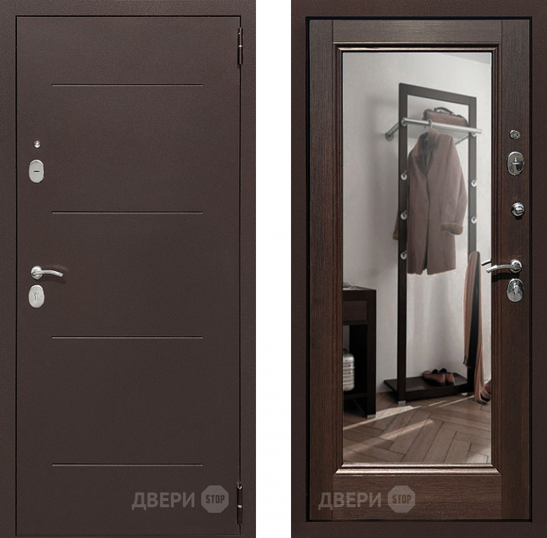 Входная металлическая Дверь Престиж 100 с зеркалом Медь/Венге 860х2050 мм
