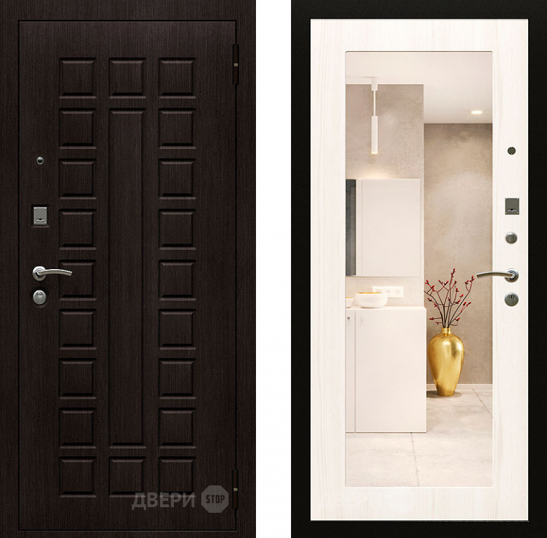 Входная металлическая Дверь Райтвер Сенат-лайф с зеркалом Беленый Дуб 860х2050 мм