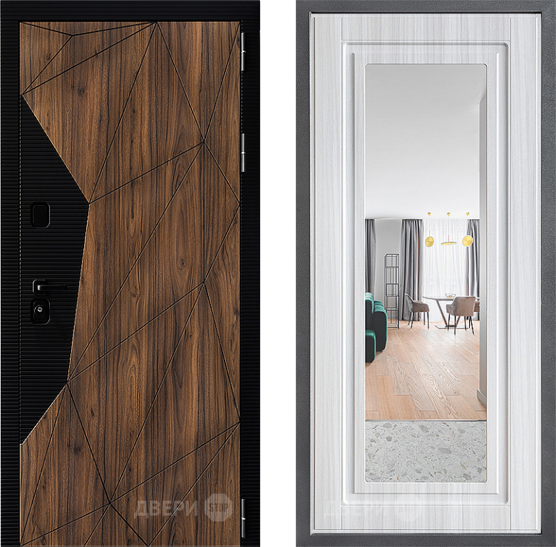Входная Дверь Дверной континент ДК-11 ФЛЗ Зеркало Сандал белый 860x2050 мм
