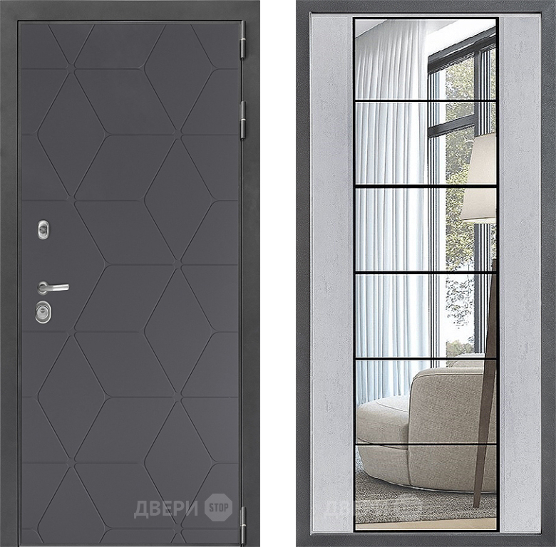 Входная Дверь Дверной континент ДК-3/744 ФЛЗ-2 Зеркало Бетон светлый 860x2050 мм