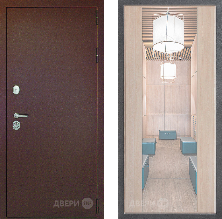 Входная Дверь Дверной континент Рубикон Медь Дизайн ФЛЗ-1 Зеркало Капучино 860x2050 мм