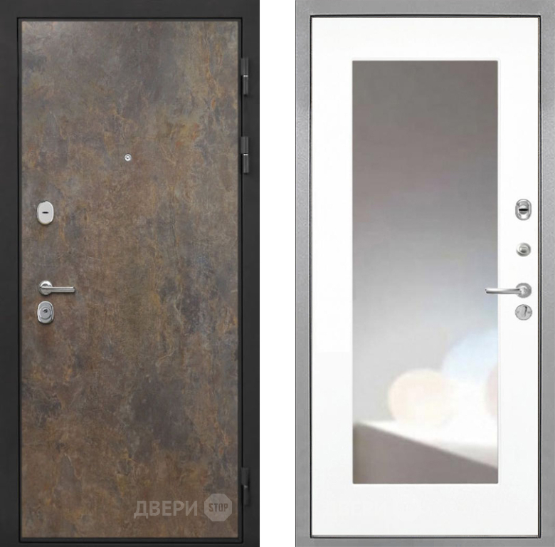 Входная Дверь Интекрон (INTECRON) Гектор Гранж ФЛЗ-120-М Зеркало Белый матовый 860x2050 мм