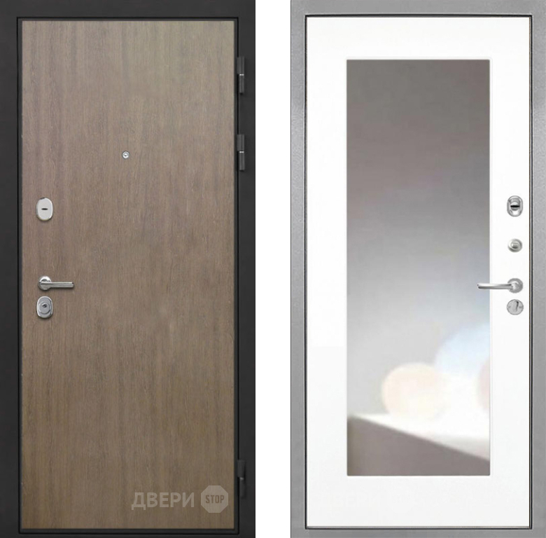 Входная Дверь Интекрон (INTECRON) Гектор Венге Коричневый ФЛЗ-120-М Зеркало Белый матовый 860x2050 мм