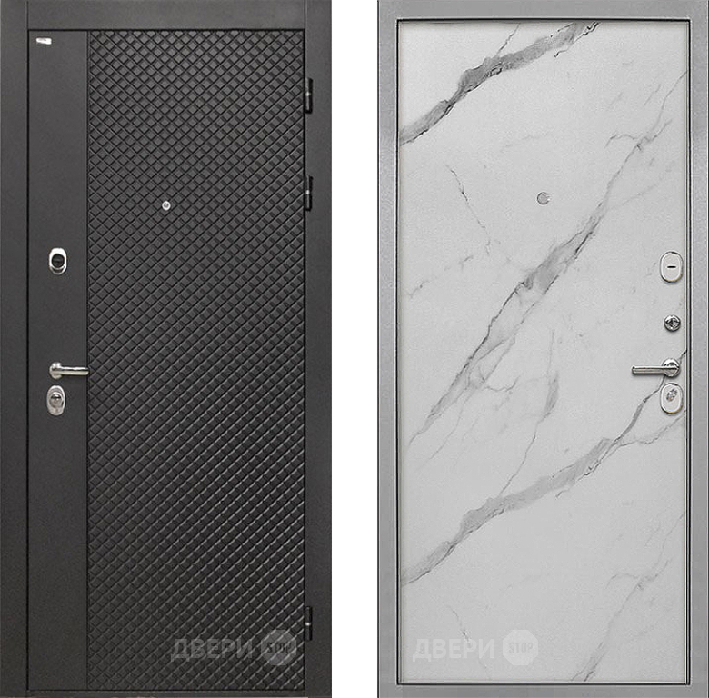 Входная Дверь Интекрон (INTECRON) Олимпия Black 4К Гладкая Мрамор натуральный арктик 860x2050 мм