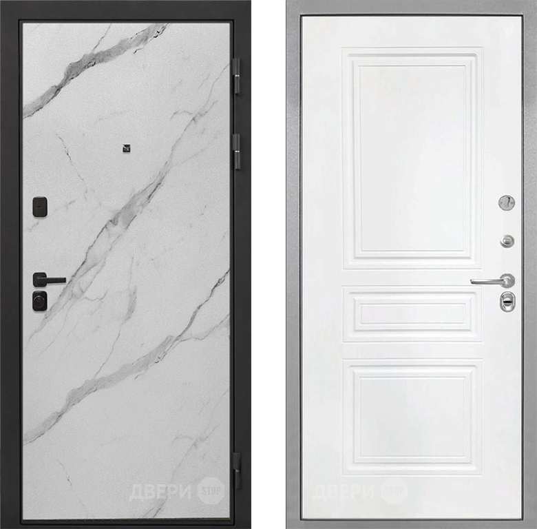 Входная Дверь Интекрон (INTECRON) Профит Black Мрамор Арктик ФЛ-243 Белый матовый 860x2050 мм