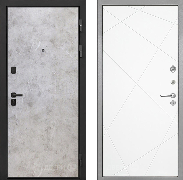 Входная Дверь Интекрон (INTECRON) Профит Black Мрамор Светлый Лучи-М Софт милк 860x2050 мм