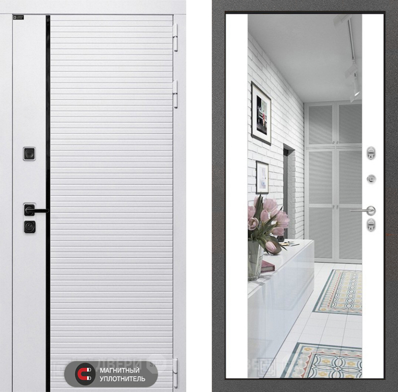 Входная Дверь Лабиринт (LABIRINT) Royal Зеркало Максимум Белый софт 860x2050 мм