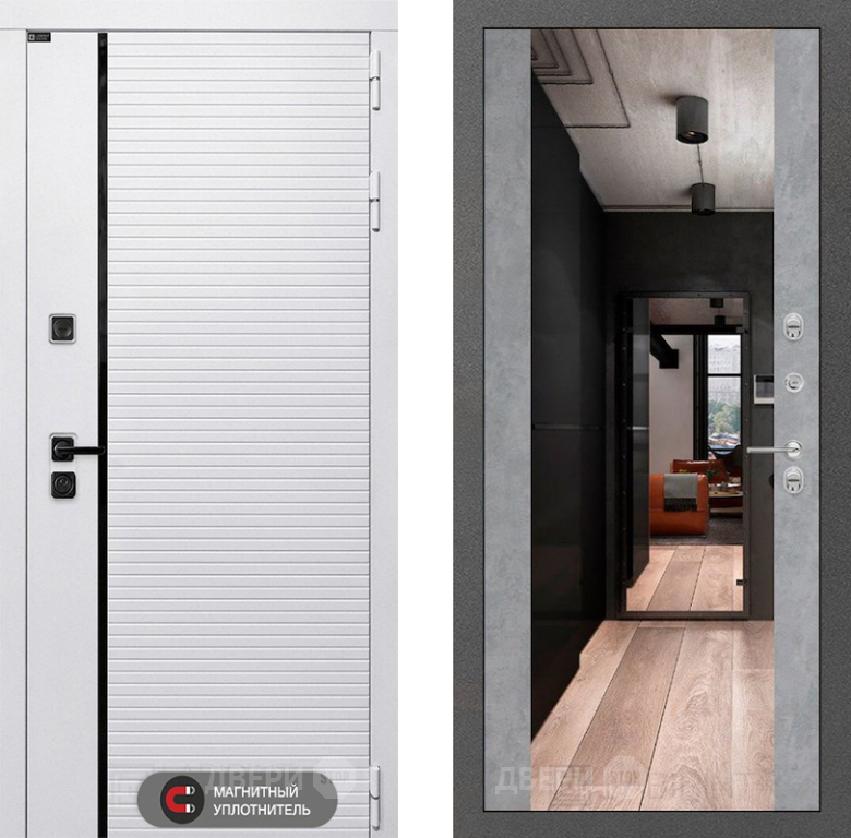 Входная Дверь Лабиринт (LABIRINT) Royal Зеркало Максимум Бетон светлый 860x2050 мм