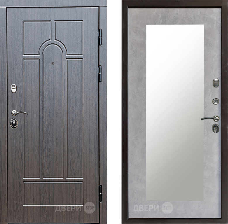 Входная Дверь Престиж Арка Зеркло Пастораль Бетон светлый 860x2050 мм