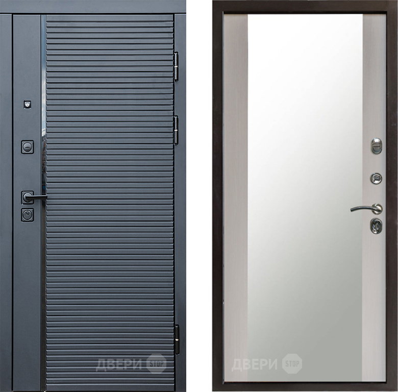 Входная Дверь Престиж Черная Линия Зеркало Лиственница белая 860x2050 мм