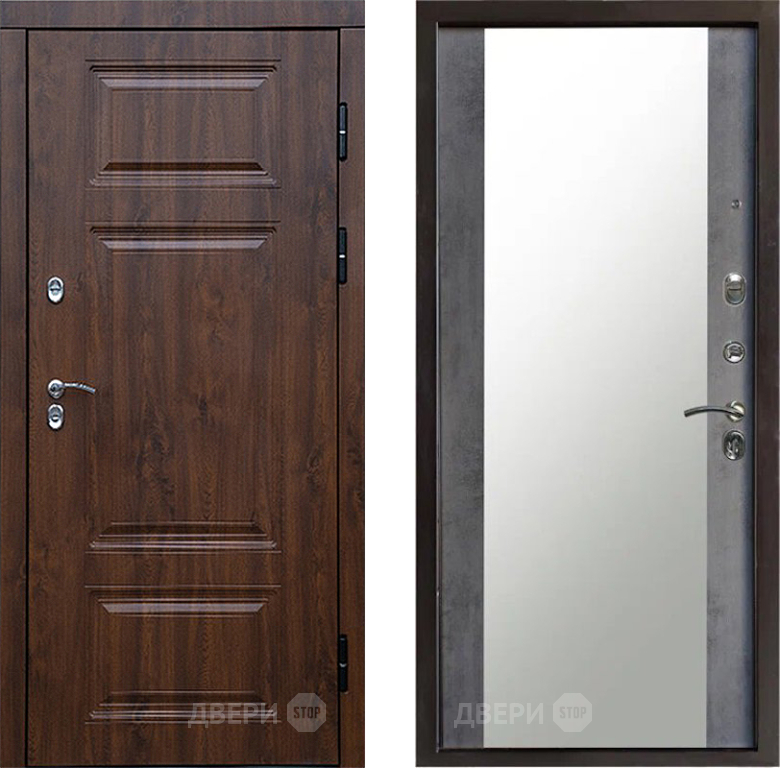 Входная Дверь Престиж TERMO с терморазрывом Премиум Орех Зеркало Бетон темный 860x2050 мм