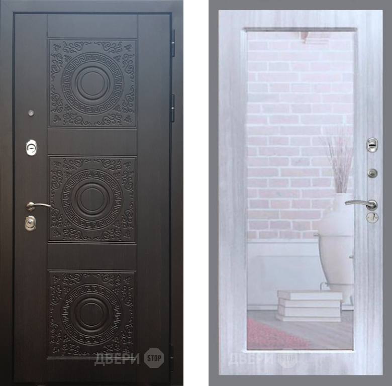 Входная Дверь Рекс (REX) 10 Зеркало Пастораль Сандал белый 860x2050 мм