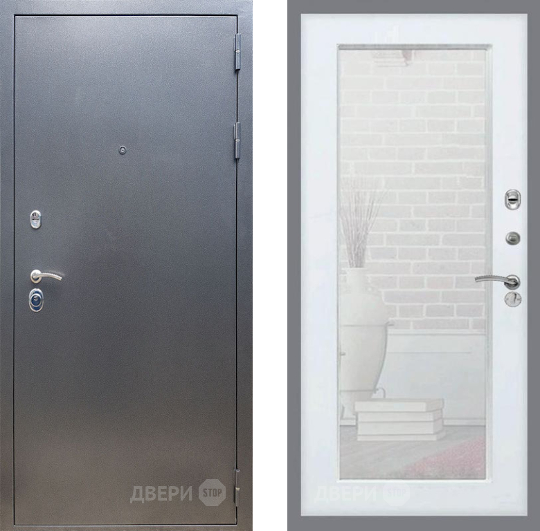 Входная Дверь Рекс (REX) 11 Зеркало Пастораль Белый ясень 860x2050 мм