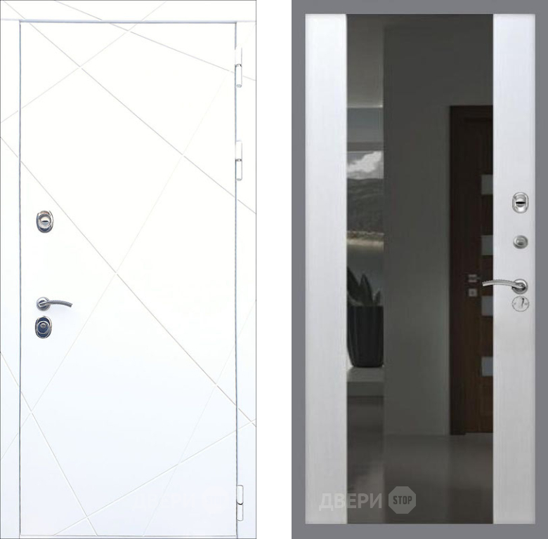 Входная Дверь Рекс (REX) 13 Силк Сноу СБ-16 с Зеркалом Лиственница беж 860x2050 мм