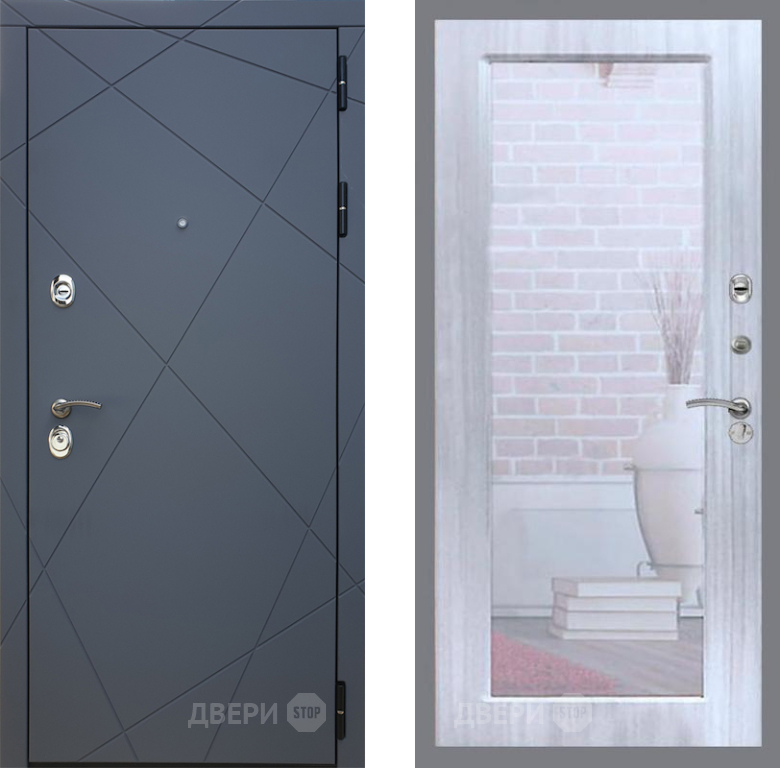 Входная Дверь Рекс (REX) 13 Силк Титан Зеркало Пастораль Сандал белый 860x2050 мм