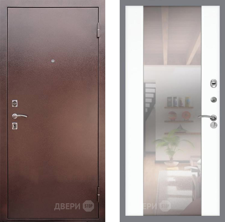 Входная Дверь Рекс (REX) 1 СБ-16 Зеркало Силк Сноу 860x2050 мм