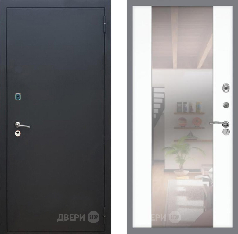 Входная Дверь Рекс (REX) 1A Черный Муар СБ-16 Зеркало Силк Сноу 860x2050 мм