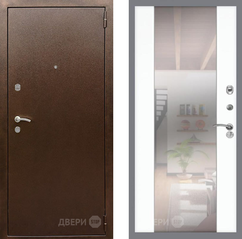 Входная Дверь Рекс (REX) 1А Медный Антик СБ-16 Зеркало Силк Сноу 860x2050 мм