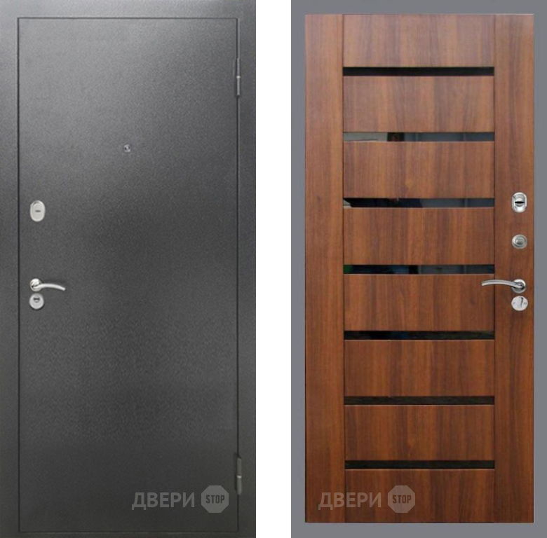 Входная Дверь Рекс (REX) 2А Серебро Антик СБ-14 стекло черное Орех бренди 860x2050 мм