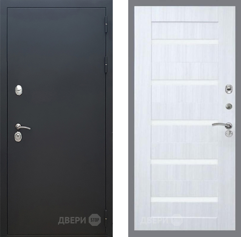 Входная Дверь Рекс (REX) 5 Черный Муар СБ-14 стекло белое Сандал белый 860x2050 мм