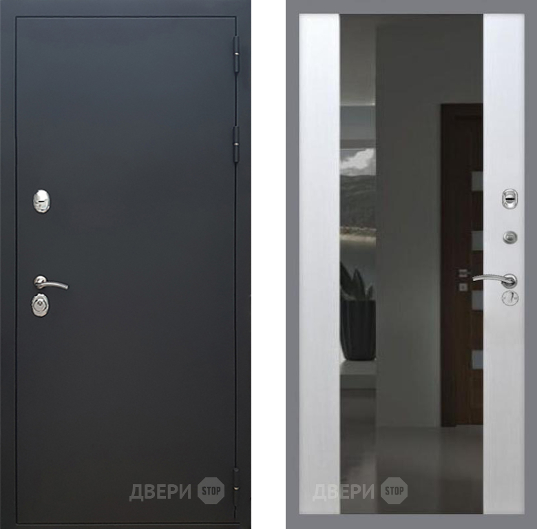 Входная Дверь Рекс (REX) 5 Черный Муар СБ-16 с Зеркалом Лиственница беж 860x2050 мм