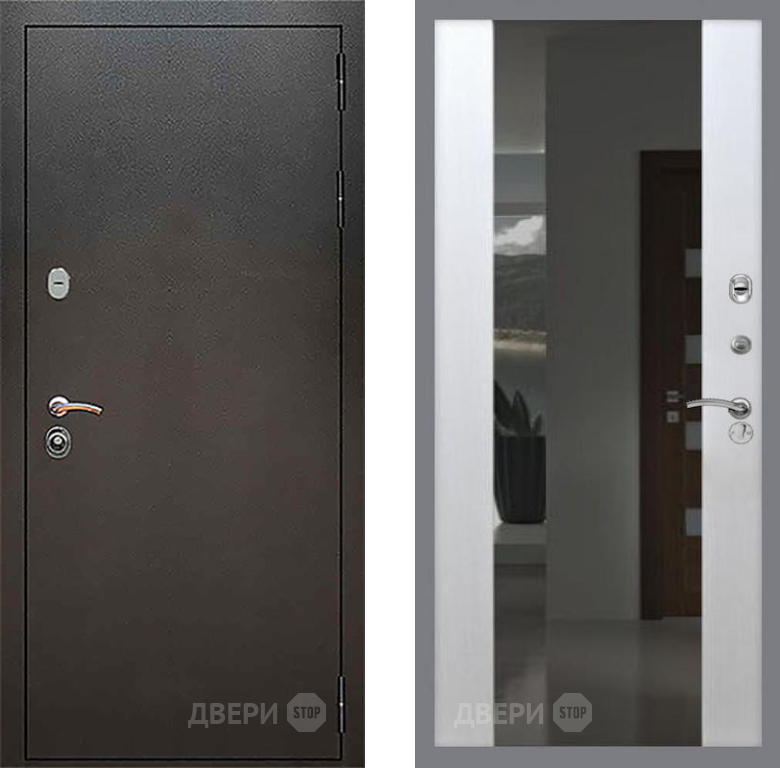 Входная Дверь Рекс (REX) 5 Серебро Антик СБ-16 Зеркало Белый ясень 860x2050 мм