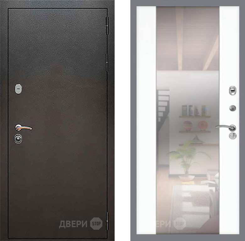 Входная Дверь Рекс (REX) 5 Серебро Антик СБ-16 Зеркало Силк Сноу 860x2050 мм