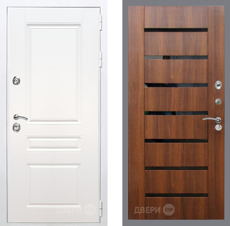 Входная Дверь Рекс (REX) Премиум-н Силк Сноу СБ-14 стекло черное Орех бренди 960x2050 мм