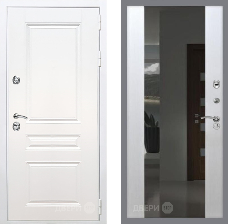 Входная Дверь Рекс (REX) Премиум-н Силк Сноу СБ-16 с Зеркалом Лиственница беж 860x2050 мм