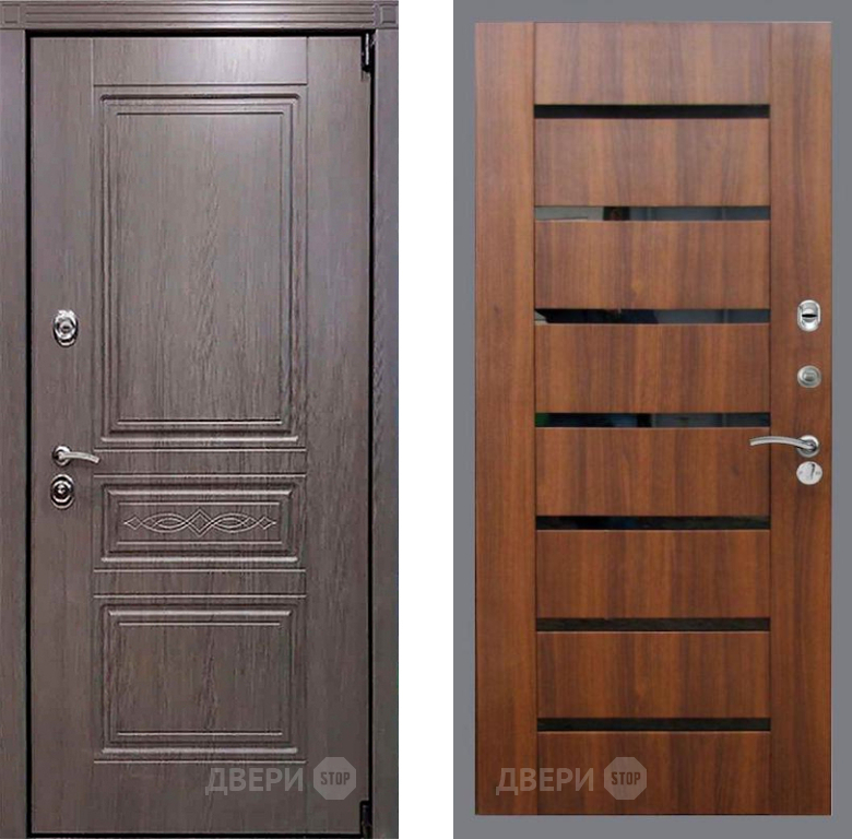Входная Дверь Рекс (REX) Премиум-S СБ-14 стекло черное Орех бренди 860x2050 мм