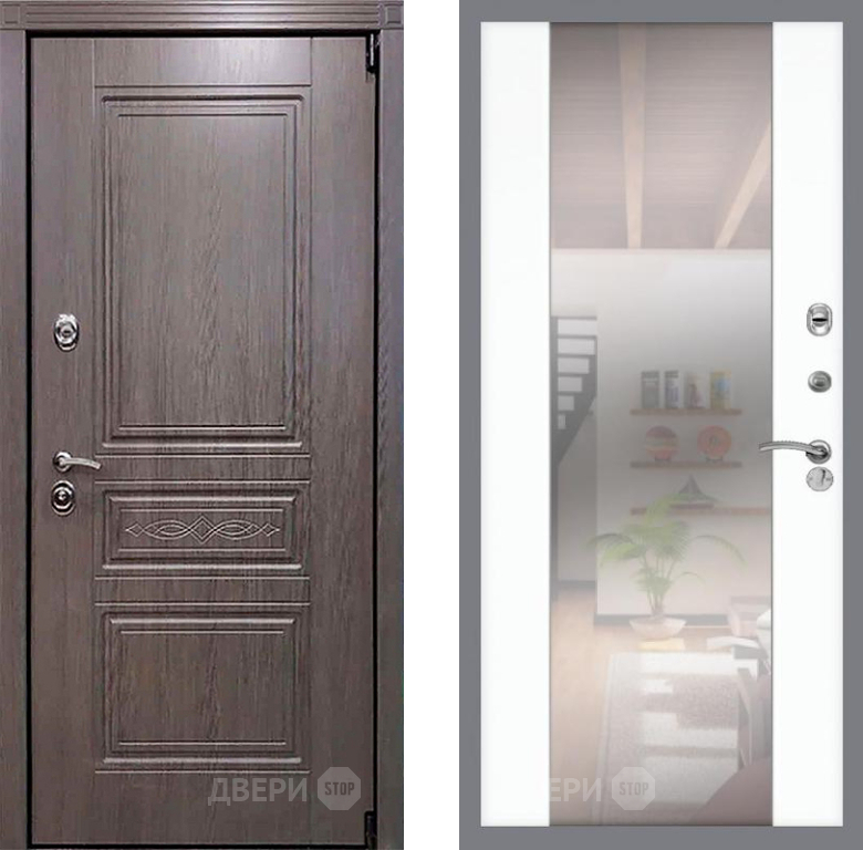 Входная Дверь Рекс (REX) Пренмиум-S СБ-16 Зеркало Силк Сноу 860x2050 мм