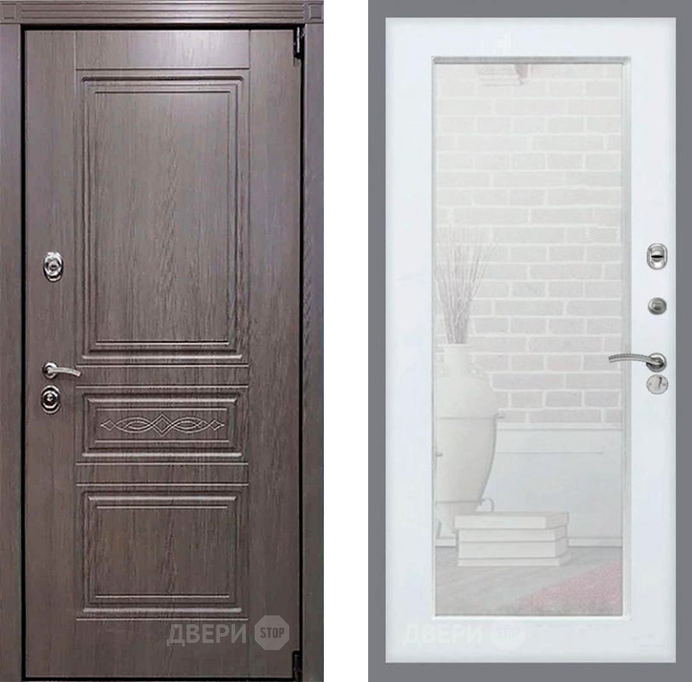 Входная Дверь Рекс (REX) Пренмиум-S Зеркало Пастораль Белый ясень 860x2050 мм