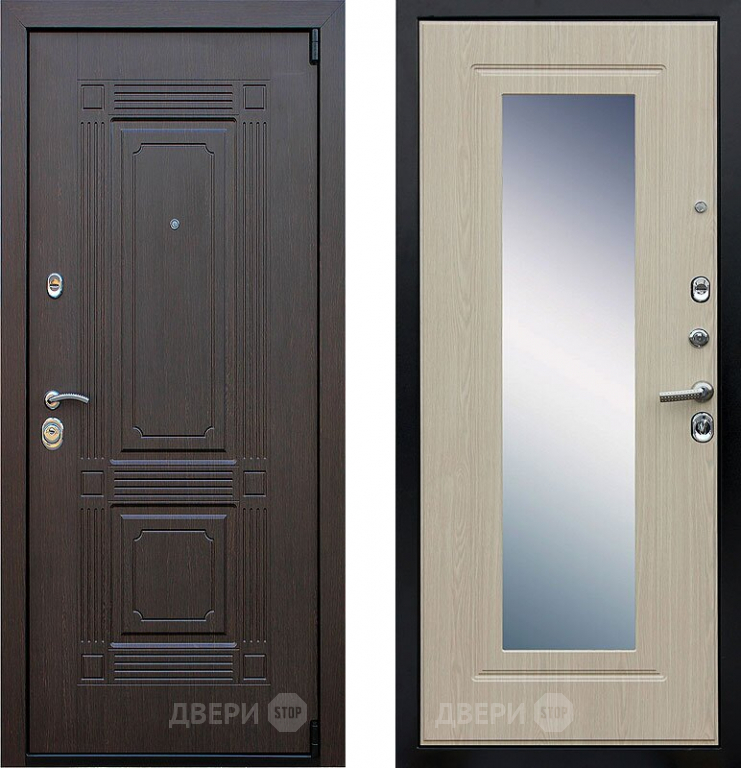 Входная металлическая Дверь АСД Викинг с зеркалом Белёный дуб 860х2050 мм