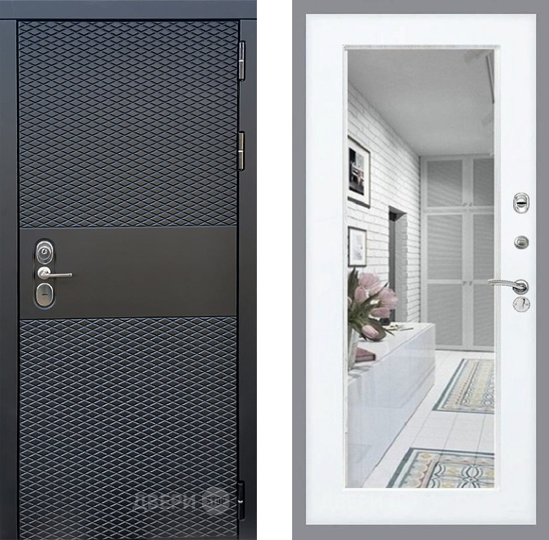 Входная Дверь Стоп БЛЭК CISA Зеркало Силк Сноу 860x2050 мм