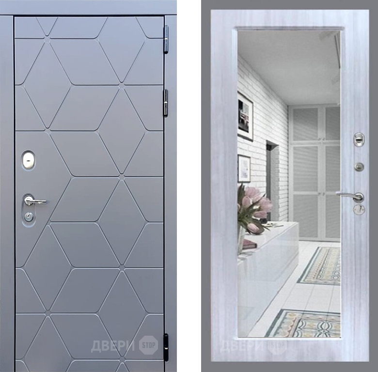 Входная Дверь Стоп КОСМО Зеркало Сандал белый 860x2050 мм