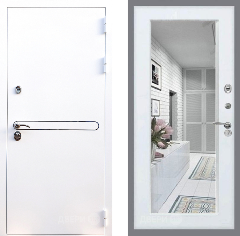 Входная Дверь Стоп Лайн Вайт Зеркало Белый ясень 860x2050 мм