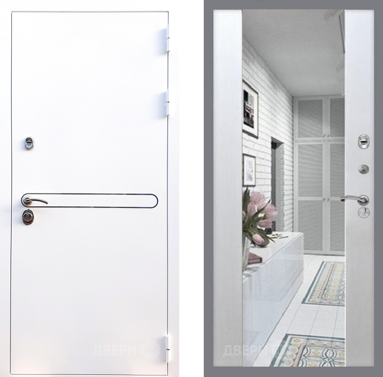 Входная Дверь Стоп Лайн Вайт Зеркало СБ-16 Лиственница беж 860x2050 мм