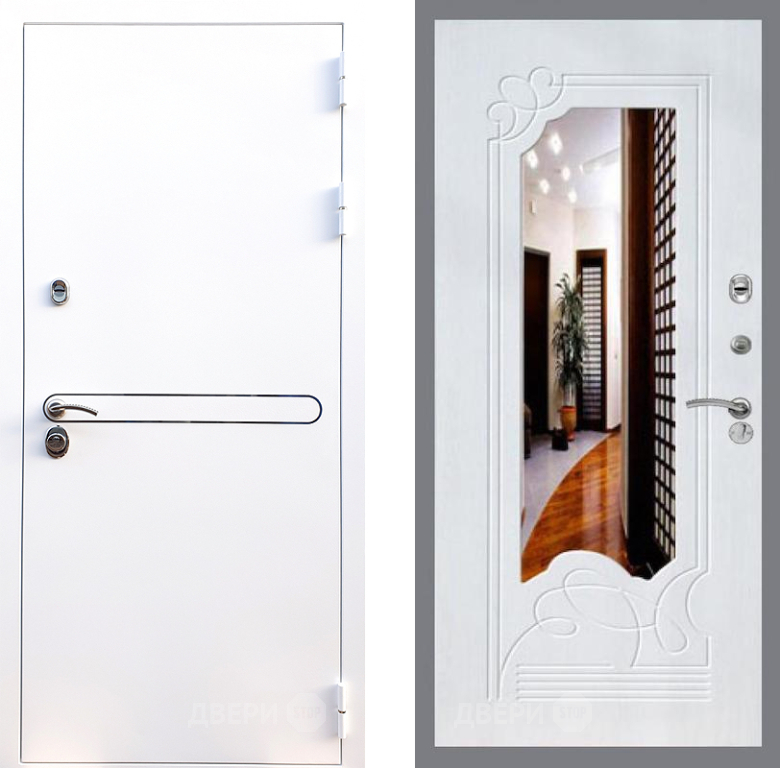 Входная Дверь Стоп Лайн Вайт ЗкркалоФЛ-147 Ясень белый 860x2050 мм