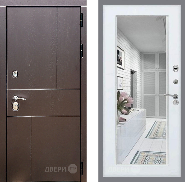 Входная Дверь Стоп УРБАН Зеркало Белый ясень 860x2050 мм