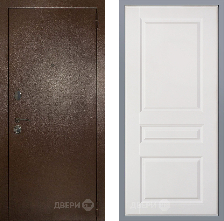 Входная Дверь Заводские двери Эталон 3к антик медь Стокгольм Белый софт 860x2050 мм