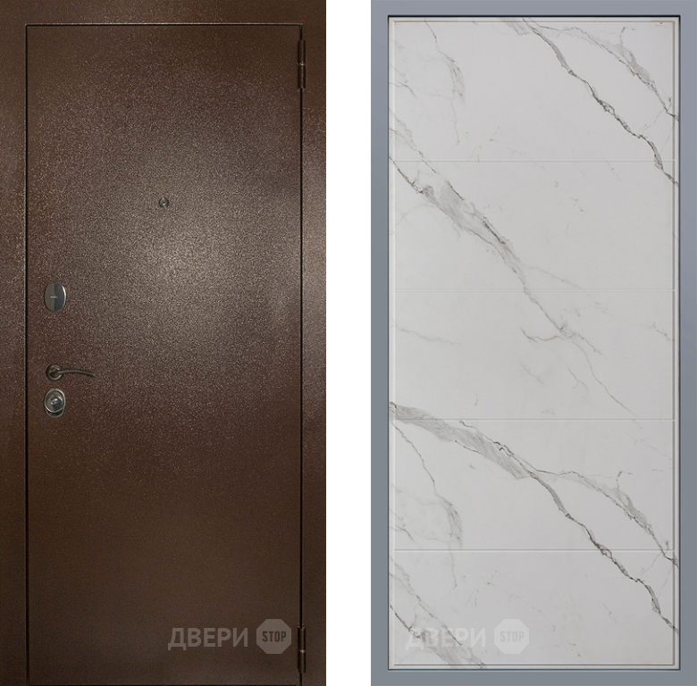 Входная Дверь Заводские двери Эталон 3к антик медь Тривия Мрамор белый 860x2050 мм