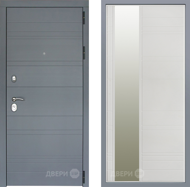 Входная Дверь Заводские двери Лира Софт графит Зеркало Лира Белый софт 860x2050 мм
