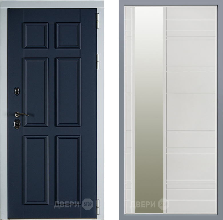 Входная Дверь Заводские двери Стокгольм Зеркало Лира Белый софт 860x2050 мм